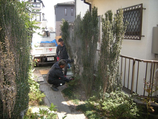 玄関前の樹木伐採